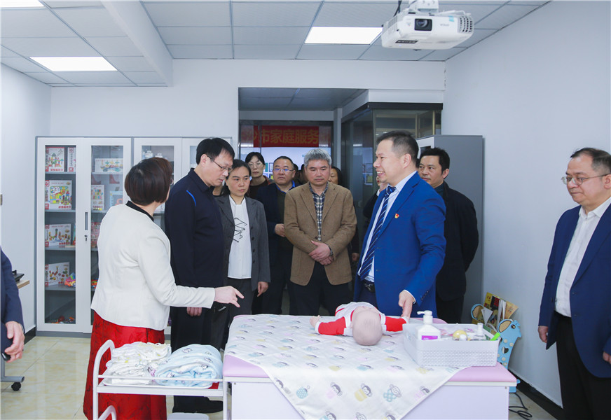 雨花区人大常委会主任会议成员一行先后参观了金职伟业运营总部、金职伟业职业培训学校、金职伟业创业就业孵化基地,金婴丽人直营门店,实地视察了金职伟业开展的各项业务工作,了解了金职伟业家庭服务培训板块、1+X证书制度试点情况及就业创业工作开展情况。参观过程中,雨花区人大常委会主任会议成员一行听取了金职伟业集团董事长彭英、总经理潘建明的工作汇报,对于金职伟业响应国家号召,做好民生实事,积极开展职业技能培训,多形式、多样化推动全省就业创业工作所取得的成绩,及为促进职业教育蓬勃发展,在幼儿照护职业技能等级证书推进过程中做出的成效,雨花区人大常委会党组书记、主任龚景顺给予了高度评价。
