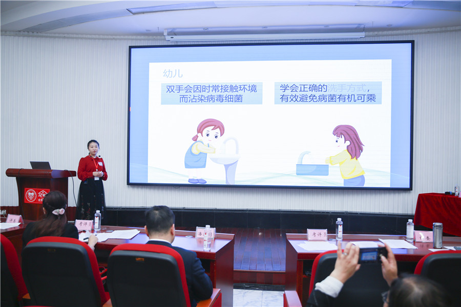 比赛结束后,长沙民政职业技术学院教学咨询与指导团队专家、湖南省教育考试院艺术类考试评委库专家胡蓉作为评审专家代表发言,并对本次竞赛作出专家点评。胡蓉老师提到,“非常荣幸,有机会在这里和大家共同探讨如何提升教师教育教学能力,大家的优势都非常明显,其一,老师们将舞蹈、儿歌、国家标准、思政教育、劳动教务等内容融入教学环节,实行有效的教学策略;其二,老师们整体专业素养极高,如:专业知识点及技能点,个人能力等。最后,胡蓉老师针对“学情分析”“学生主体设计”“无学生片段展示”三个方面进行了分享与探讨。