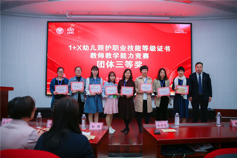 而后,进入本次1+X幼儿照护证书教师教学能力竞赛的颁奖环节,以喻袁全老师为代表的第八组荣获团体一等奖,以石艳婷、李玉老师为代表的第三组、第九组荣获团体二等奖,以刘义青、刘小燕、柴婷老师为代表的第四组、第七组、第十二组荣获团体三等奖;以袁红霞、李桂红、赵倩老师为代表的第二组、第十组、第十一组荣获团体优胜奖,同时评选了一批优秀班干部、优秀学员。