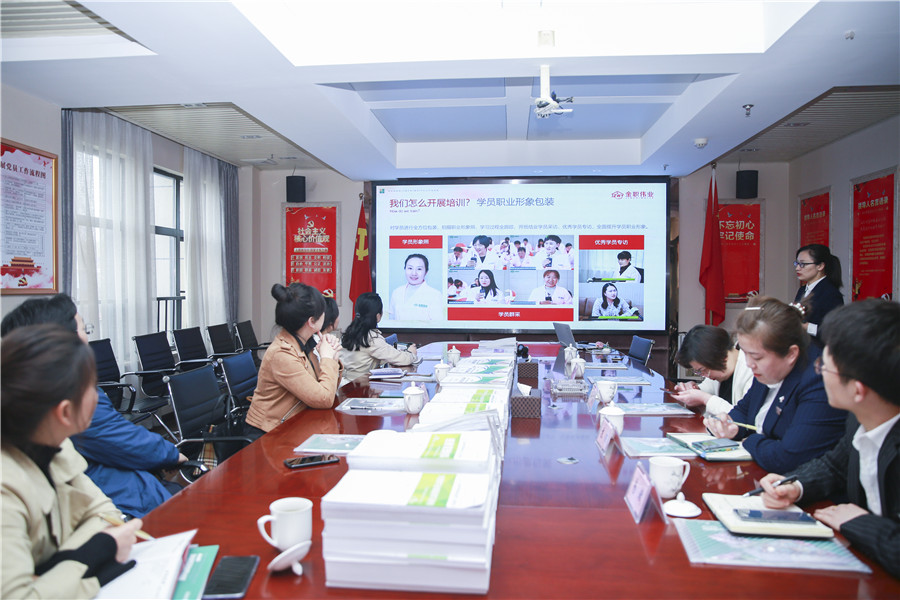 为实现多方聚力,促进家庭服务业的高质量发展,4月27日,湘潭天英职业技能培训学校陈彬校长一行莅临金职伟业参观交流,金职伟业董事长彭英、金职伟业总经理潘建明、外联部经理苏琼、品牌运营总监周娟、市场部副总监易斌等陪同接待。