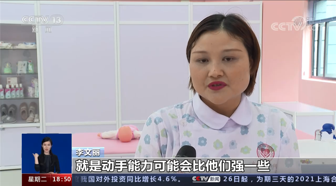 “自从来到长沙民政职业技术学院,我学习到很多专业知识,比如法律、心理辅导等方面的内容。在今后,我也希望把我从学校学到的东西和我的工作经验传授给更多需要的人,帮助更多的人。”2021年4月27日,金职伟业金牌月嫂、育婴员高级讲师李文丽,作为长沙民政职业技术学院家政服务与管理专业扩招生,登上中央电视台《共同关注》节目。李文丽在金职伟业与长沙民政职业技术学院校企共建的母婴护理实训室内接受了记者采访。