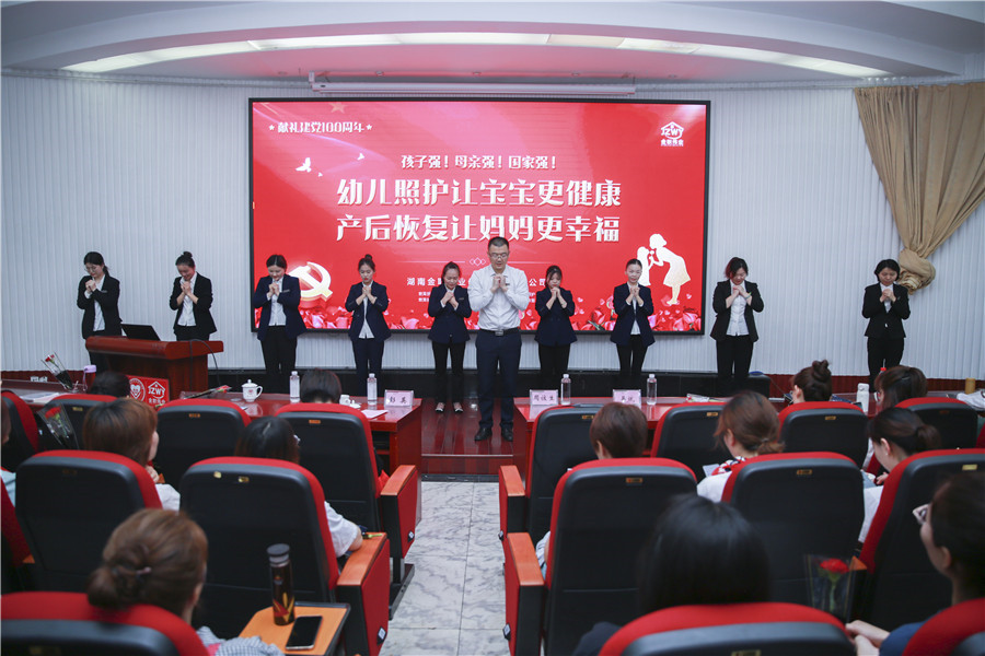 紧接着,以“幼儿照护让宝宝更健康,产后恢复让妈妈更幸福”的主题活动正式拉开序幕。伊始,金职伟业区域考评团队秉承“贴心、专业、创新、感恩”的理念,精心准备了手语舞——《感恩的心》。一双双挥舞的双手,传递着金职伟业对老师们、母亲们浓浓的感恩、祝福之情。台下老师深受感染,纷纷举起双手,共同舞动。