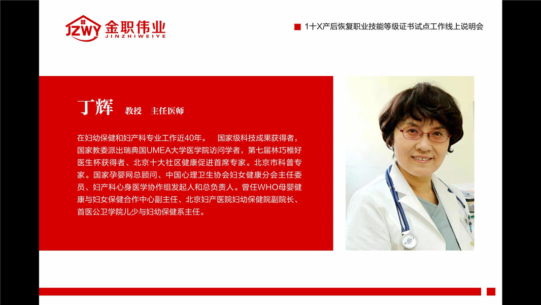 此次,是继金职伟业作为第三批职业教育培训评价组织成功举办1+X幼儿照护职业技能等级证书试点线上说明会后,再次以第四批职业教育培训评价组织身份开展的第二次线上试点说明会。金职伟业在“1+X幼儿照护”职业技能等级证书试点推进工作上的成功试水及经验积累,必将为“1+X产后恢复”职业技能等级证书试点工作推进奠定良好基础。