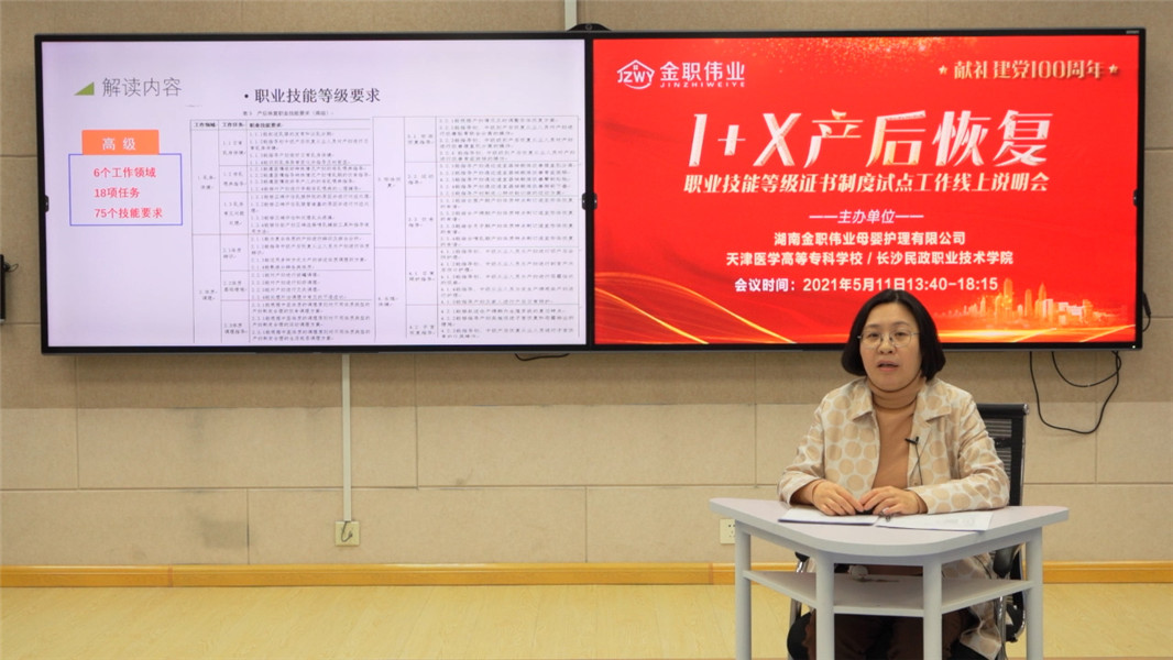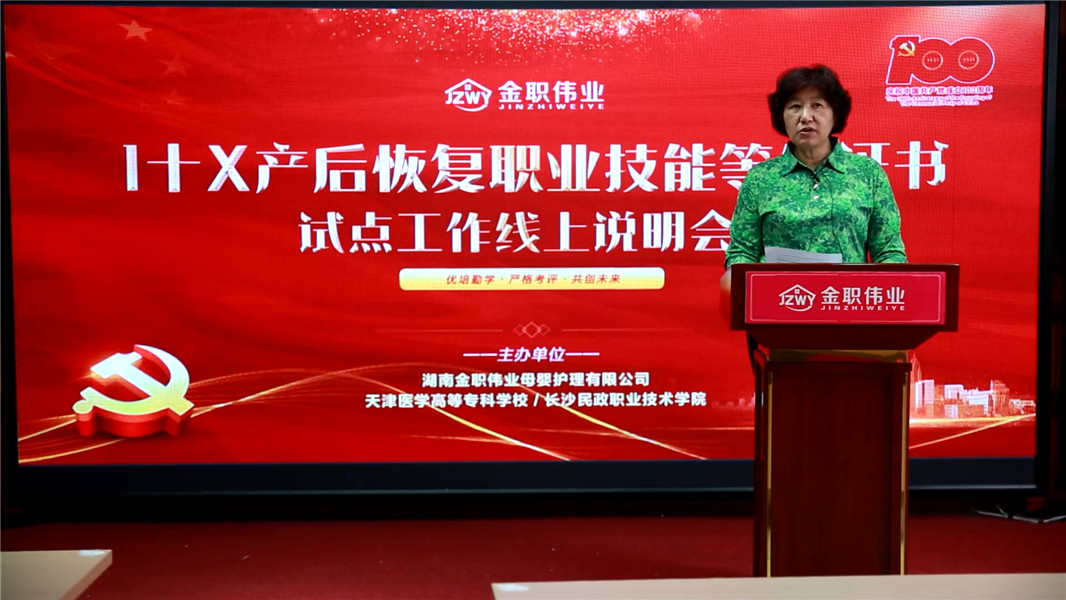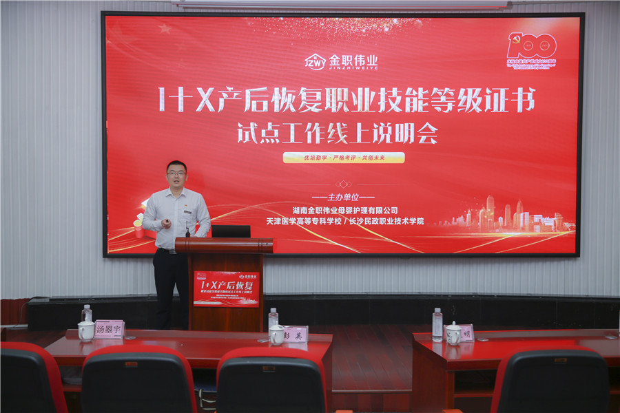 据悉,此次说明会由湖南金职伟业母婴护理有限公司(下简称“金职伟业”)、天津医学高等专科学校、长沙民政职业技术学院共同主办,旨在探索1+X产后恢复职业技能等级证书发展路径,创新妇幼人才培养模式,共同探讨推动产后恢复行业高效优质发展的新思路、新做法、新举措,对贯彻国家职业教育改革实施方案,落实1+X产后恢复证书制度试点工作具有重要意义。
