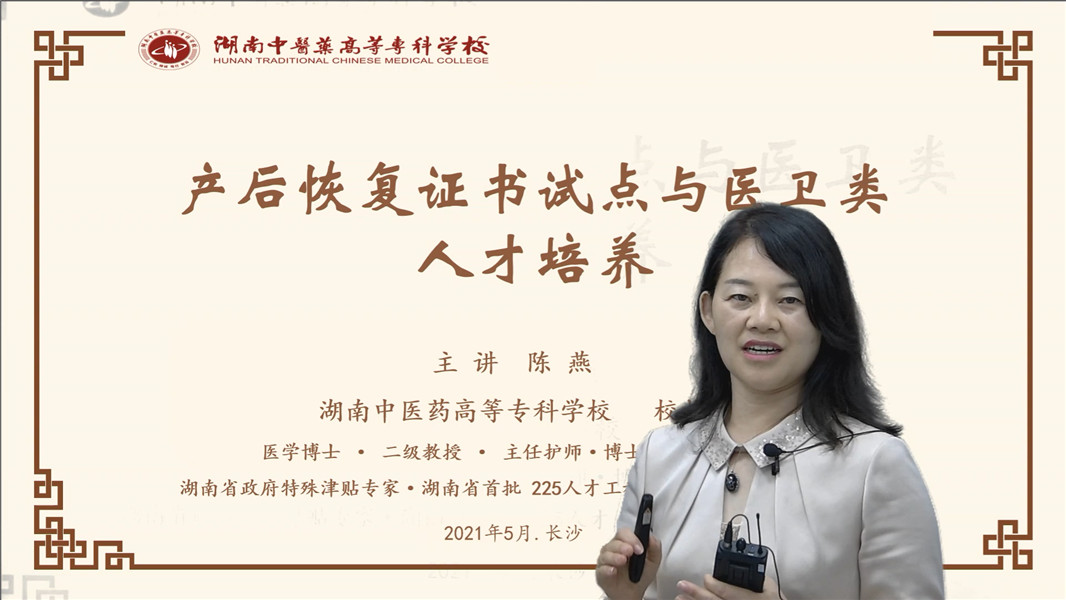 湖南中医药高等专科学校校长陈燕 作《产后恢复证书试点与医卫类人才培养》主题分享