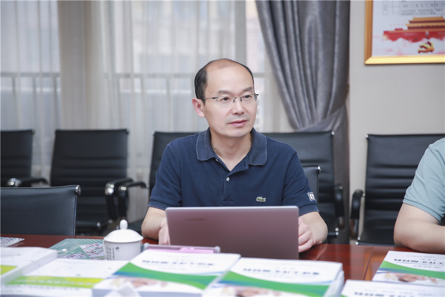 为加强试点院校与评价组织之间的交流,推动1+X证书制度试点工作实现高质量发展,5月12日,安徽省淮北卫生学校校长助理李强先生一行莅临金职伟业,就教材研发、考评方式及标准、虚拟仿真软件开发情况进行沟通交流,金职伟业董事长彭英、总经理潘建明等陪同接待。