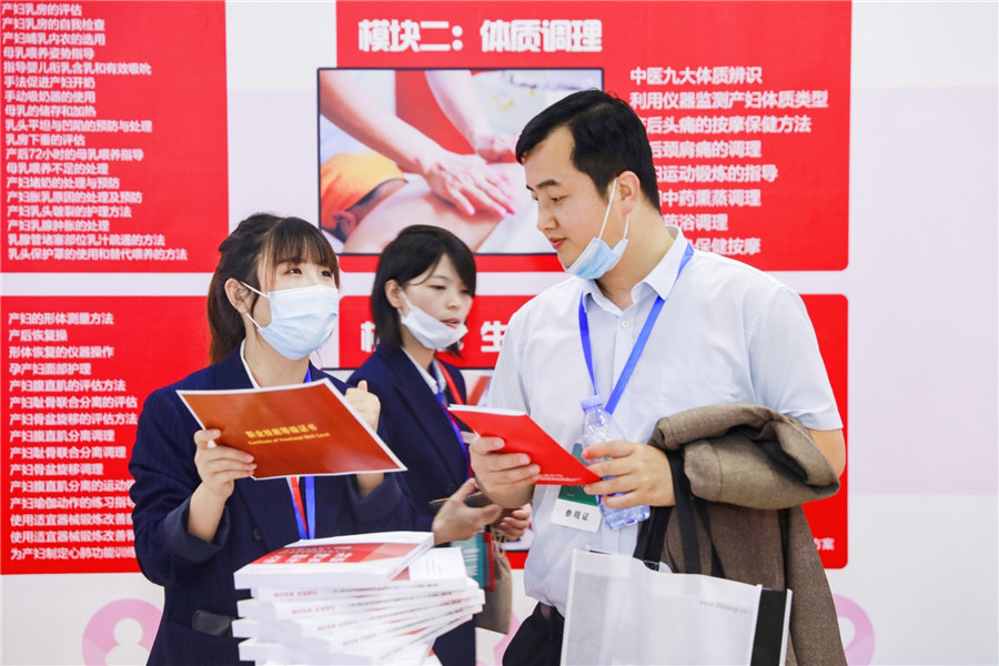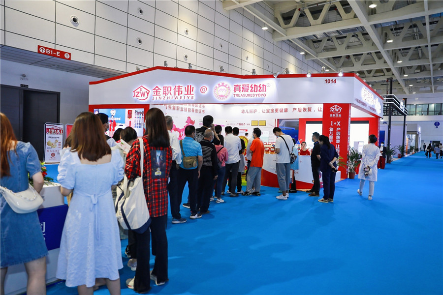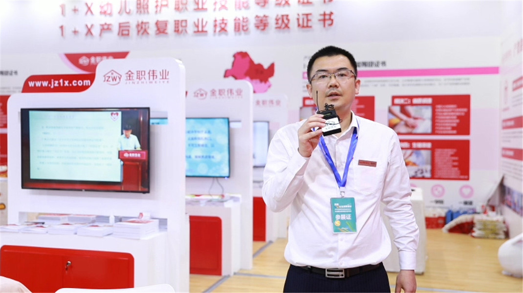 “托育、产后恢复领域发展态势都十分良好,1+X幼儿照护、产后恢复证书的诞生,是顺应市场、行业、社会的需求。”“在仅仅一年的时间里,金职伟业通过1+X证书就取得了积极成效,很期待看到这个企业在推动职业教育发展方面的下一步做法。”“展位以红色为主色调,十分醒目,内容图文并茂,做到了专业理论与具体实践的结合,十分吸人眼球。”“这两个X证书能够为家庭解决问题,还能给孩子、母亲送去健康,希望金职伟业能够将这项事关民生福祉的大爱事业,坚持做下去。”“经过了解,1+X产后恢复证书师资及考评员培训将在今年6月开班,我是助产专业的老师,所以还是挺想参加的。”在金职伟业展位上,参观者可以直观、全面地看到1+X幼儿照护、产后恢复证书基于产教融合的人才培养实施方案,了解到金职伟业如何通过1+X证书构建人才培养体系,为产业输送专业技能人才,成为产业链优化升级的有利引擎。