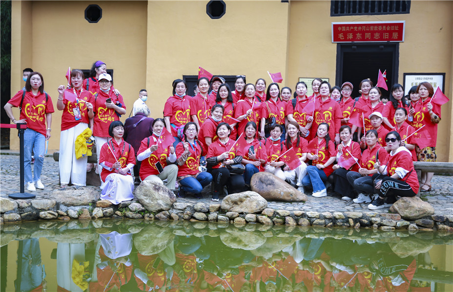井冈山是中国第一个农村革命根据地,也是党的群众路线的发源地,被誉为“中国革命的摇篮”。这里散布着革命旧址遗迹100多处,成为后人追寻红色足迹,重温革命情怀的选择地。据了解,本次活动主要参观了井冈山“胜利的号角”、井冈山革命博物馆、挹翠湖公园、茨坪毛泽东故居、黄洋界景区、井冈山革命烈士陵园等地,裹挟岁月的沧桑,这些革命旧址铭刻着红军斗争的历史痕迹,大家深受感染,纷纷感叹中国共产党的坚韧,并拍照打卡留念。