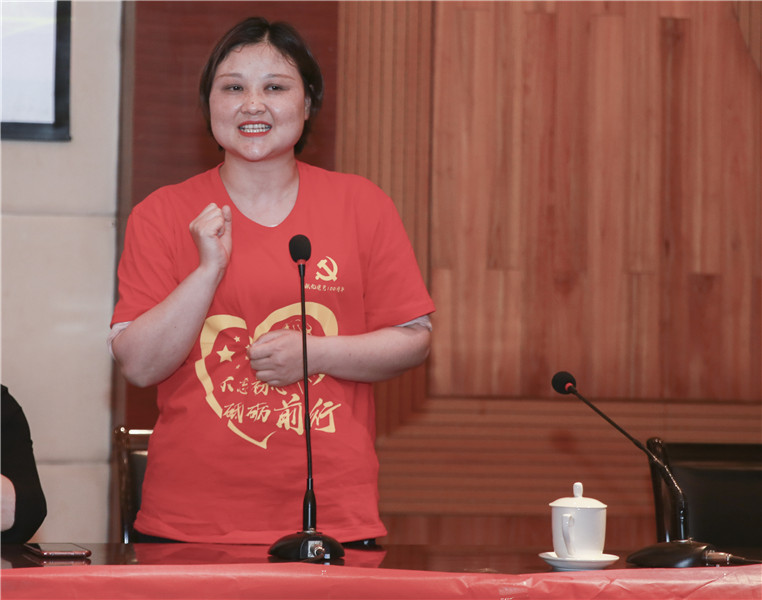 彭英详细讲解了中国共产党的诞生和奋斗历程,以及朱德、陈树湘优秀中国共产党员的伟大英雄事迹,一个个鲜活的人物,一桩桩动人的事迹,让在座所有人感受到了浓浓的爱国主义情怀和中国共产党勇于担当,不怕牺牲,一切为民的献身精神。“共产党的坚强信念是我们取得一个又一个胜利的保障。相信,在党中央的领导下,建国100周年的远大理想一定能实现,中华民族伟大的民族复兴指日可待。”