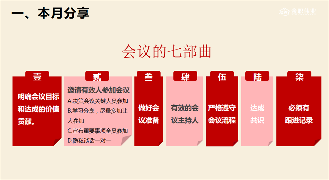 2.邀请有效人参加会议:决策会议,关键人员参加;学习分享,尽量多人参加;宣布重要事项,全员参加;隐私谈话,一对一。