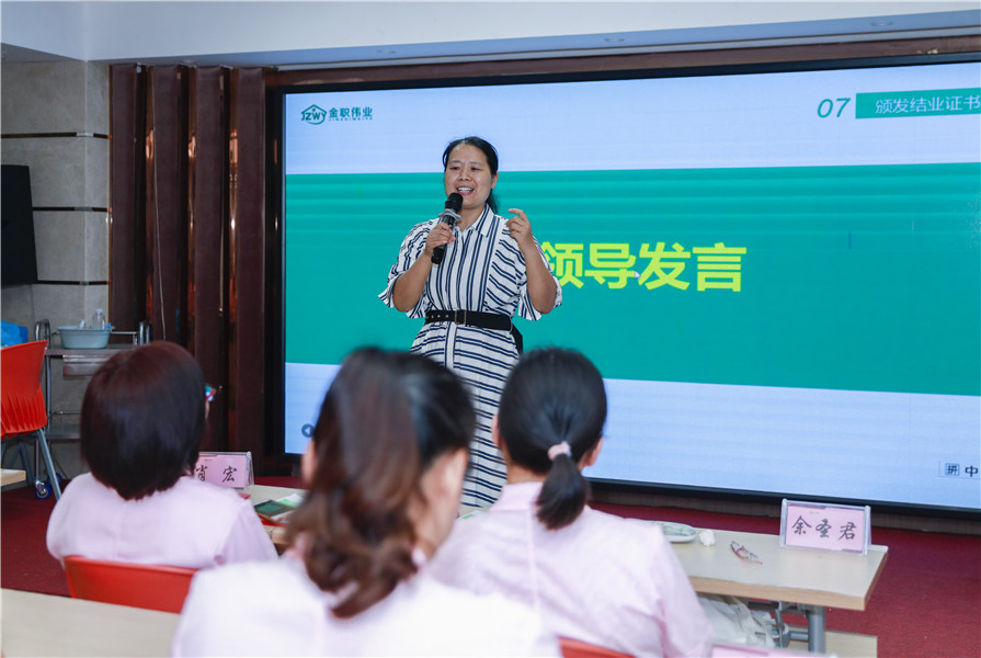 最后,此期培训班主任徐燕、资深讲师杨娟为学员们送上结业祝福。“首先提前预祝大家考试顺利通过,希望各位学员姐妹生活得越来越好,收获财富与美满人生。”“每个人都有老去的一天,每个人都需要养老护理,希望你们能够坚守在这个行业,成为出色的养老护理员。”相逢又告别,归帆又离岸,既是往日欢乐的终结,又是未来幸福的开端。