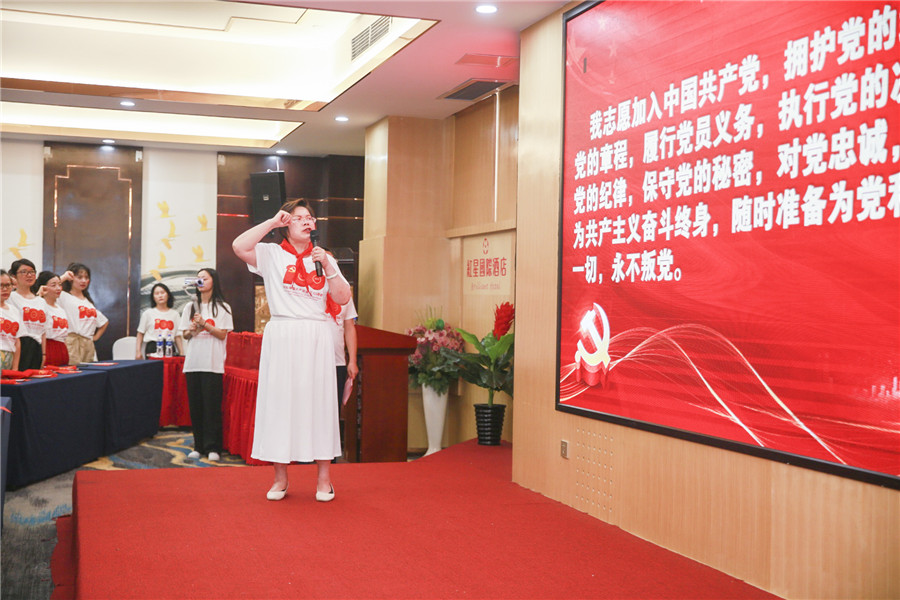 在金职伟业董事长彭英的带领下,在座人员集体起立,握拳宣誓,“我志愿加入中国共产党,拥护党的纲领,遵守党的章程,履行党员义务……”一字一句,神圣而豪迈,铮铮誓言,坚定了理想与信念。雄关漫道真如铁,而今迈步从头越。每一次重温,都是精神的淬炼;每一次对标,都是前行的起点。