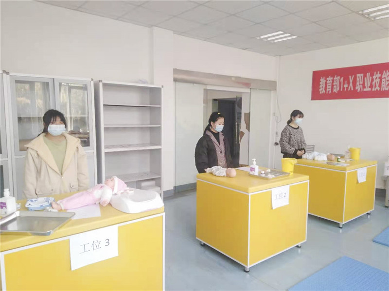中高端消费升级,外附政策加持,迅速打开了托育市场,为在这片蓝海抢占一席之地,各托育机构、早教中心求贤若渴,一时间幼教等相关专业人才成了抢手的“香饽饽”。洞悉到市场的需求及国家发展方向,文山州卫生学校作为文山州唯一一所公办全日制医药卫生类中等职业学校,随即对人才培养模式进行改革,并积极开展1+X证书制度试点工作,申报了托育领域的第一张X证书——幼儿照护职业技能等级证书,并于2020年5月,正式获批为1+X幼儿照护职业技能等级证书试点院校。为提升教师职教水平,确保教学质量,文山州卫生学校多次派遣专职教师赴长沙参加幼儿照护相关培训,2020年共计选派9名教师。在深入学习后,学校依据护理专业学生的具体学习特点,将1+X幼儿照护职业技能等级证书培训内容有机融入专业人才培养方案,并制定学生培训方案和内容。2020年底,文山州卫生学校圆满完成50名学生考证计划,考试通过率为88%。