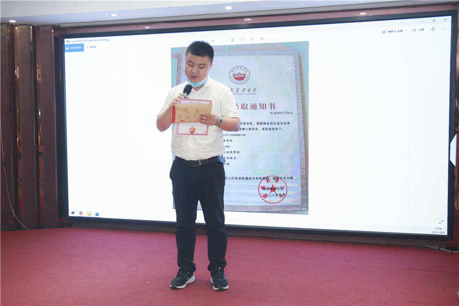 随着金职伟业员工队伍的日趋壮大,高端人才成长日益突出。近日,我司发展事业部陈慧卿考取湖南农业大学经济学院博士研究生,高学历优秀人才为企业发展注入了新活力,同时为金职伟业造就一支优秀的团队,为今后高效率、高质量的工作奠定了坚实的基础。