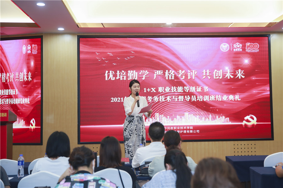 结业典礼上,金职伟业市场总监周该生首先分享了“信念”“行为”“结果”三个关键词,“一个人有什么样的信念,就会产生什么样的行为,最终也会出现验证这个信念的结果。”周该生表示,未来希望各位老师能与金职伟业互帮互助、携手并进,在回校后共同推动1+X幼儿照护、产后恢复职业技能等级证书试点工作的有序开展,为培养高质量的复合型技术技能人才贡献力量。
