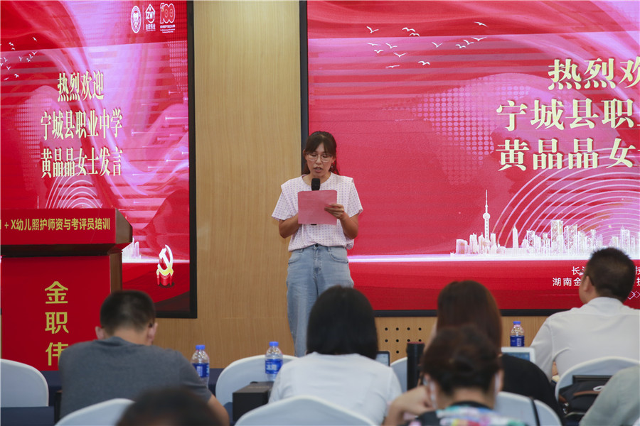 宁城县职业中学黄晶晶老师、四川省泸县建筑职业中专学校幼儿保育专业系主任李艳秋老师作为学员代表分享了她们的学习感受。“在这忙碌并收获着的三天里,金职伟业精心设计了学、观、思、练、做、考、为一体的创新培训形式,丰富充实的课程内容,既提升了各位参训学员幼儿照护考务技术与督导的理论知识,也提高了实战技能,扎实推进了每所参训学校1+X幼儿照护证书工作的顺利开展。”“本次培训,我学到的不仅仅是关于1+X证书的相关知识,还懂得了责任、使命和担当……培训虽然结束了,但我们的学习不会结束,我们的追求不会停止!”