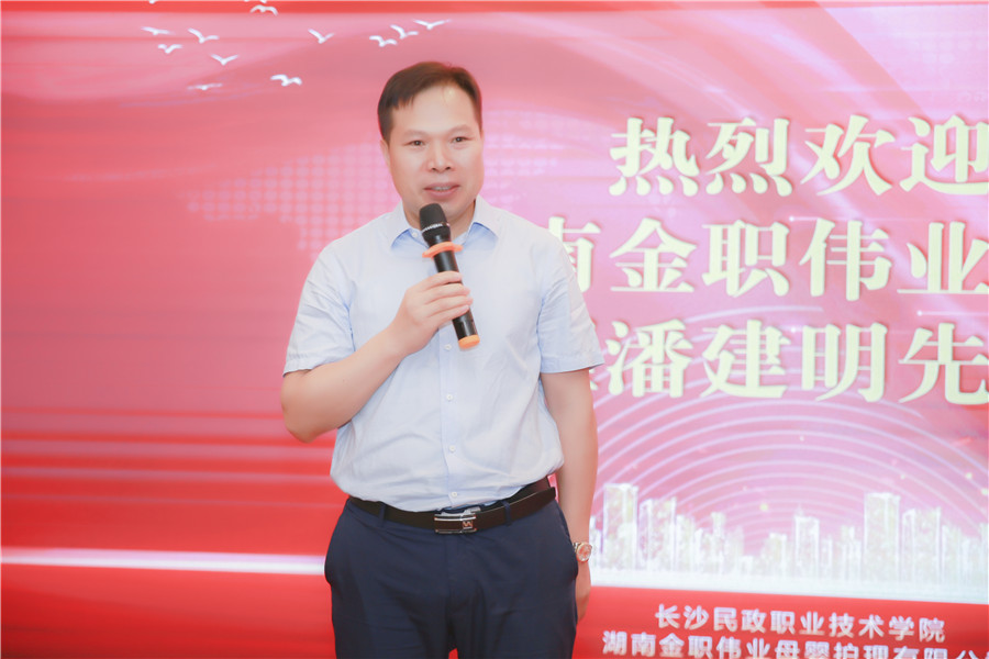 开班典礼最后,金职伟业总经理潘建明作动员讲话,他提到“多担待”“多交流”“多指导”三点,“希望在接下来的6天时间里,专家老师们多学习,多沟通,加强学校与学校、学校与企业之间的交流,不遗余力地推动幼儿照护证书落地,加快职业教育的发展。金职伟业也将不断做好服务工作,希望各位老师多提宝贵意见,与各位行业同仁携手奋进,将幼儿照护事业做大、做强。”