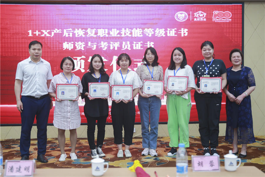 比赛结束后,1+X产后恢复职业技能等级证书第三期师资及考评员培训结业典礼正式拉开序幕。金职伟业董事长彭英、总经理潘建明出席并发言。彭英董事长首先对此次竞赛中各位老师展现出的教学能力及精神表示赞赏,并强调经过此次培训,各位老师获得了两张证书,这不仅赋予了新的责任,也担负了新的使命。“此次培训到今天就正式结束了,今后,金职伟业将会吸取经验,将1+X证书师资培训做得更加专业,也希望各位老师在回校后,将学到的产后恢复知识灵活运用至校内,共同推动1+X产后恢复证书试点工作的落地。”金职伟业总经理潘建明分享道。