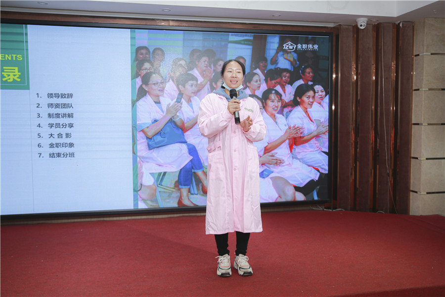 老学员徐娟分享道,“有朋自远方来不亦乐乎,很高兴跟各位相识在这里,我是之前养老护理班的学员之一,在课堂上我收获很多,不仅结交到很多朋友,也学到很多知识,非常受益。感谢国家的好政策,感谢金职伟业,也希望大家在这段学习时光中能够学有所获。”