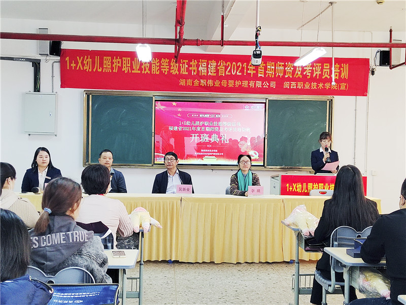 为全面落实《关于在院校实施“学历证书+若干职业技能等级证书”制度试点方案》文件精神,高质量开展1+X幼儿照护职业技能等级证书制度试点相关工作,11月11日,1+X幼儿照护职业技能等级证书福建省2021年度首期师资及考评员培训班于闽西职业技术学院顺利拉开帷幕,数十名院校专家、老师齐聚一堂,共同学习幼儿照护专业知识及技能,助力托幼托育事业人才培养。