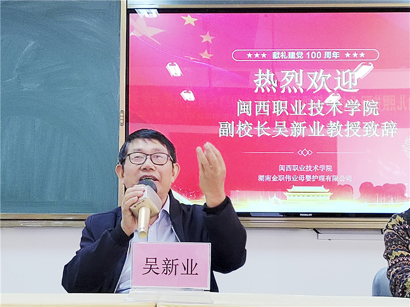 “近几年,国家陆续出台多项扶持政策,旨在加快培养婴幼儿照护相关专业人才、提高婴幼儿照护服务能力和水平,托育托幼行业将迎来全新的发展。”开班典礼伊始,闽西职业技术学院副校长吴新业教授进行开场致辞,“面对托育人才的极大缺口,1+X幼儿照护职业技能等级证书将为行业人才培养提供新的方向和育人标准。希望通过本次学习,各院校老师能更深入了解该证书在具体实施过程中的卡点问题和解决方案,共同探讨、交流有效推进托育托幼人才培养、产教研融通等问题,进一步提升专业技能水平,为真正实现学生好学、老师好教、企业好用的人才培养目标一起努力。”