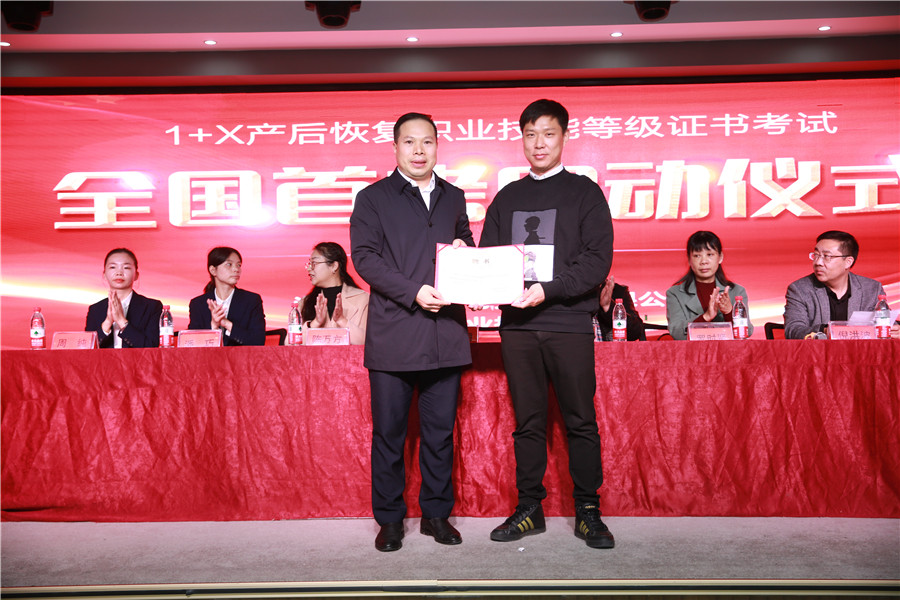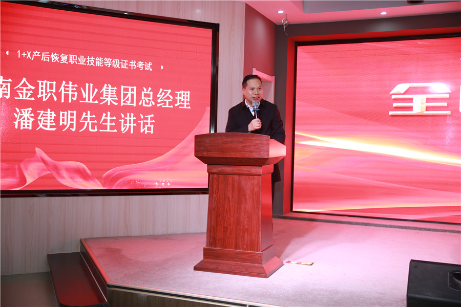 为进一步做好“学历证书+若干职业技能等级证书”制度试点工作,打造1+X产后恢复职业技能等级证书优秀首考案例,11月13日下午,1+X产后恢复职业技能等级证书考试全国首考启动仪式在荆州职业技术学院隆重举行。金职伟业总经理潘建明受邀出席并讲话。此次首考启动仪式的举行,标志着1+X产后恢复职业技能等级证书考评工作正式拉开序幕。