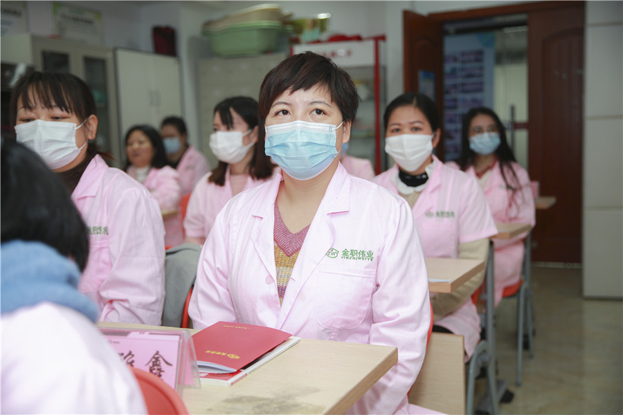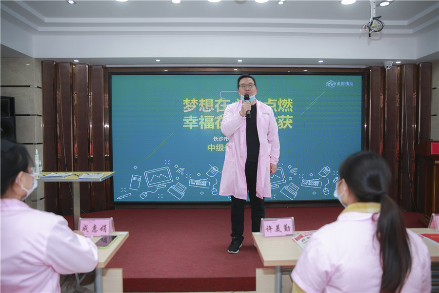 2021年11月16日,长沙市雨花区高桥街道中级养老护理员、中级保育员职业技能培训班在长沙市金职伟业职业培训学校盛大开班,来自雨花区高桥街道的百名学员济济一堂,怀揣着各自对未来的期待投入到为期十天的学习生活中。