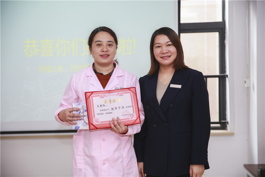 在一片掌声中,班长廖宜平荣获“优秀班干部”荣誉称号,王燕红、周晓利荣获“优秀学员”称号。“能来到金职伟业学习是一个十分正确的决定,打开了我迈进母婴行业的大门,今后我将继续在这个行业发展,希望能与大家一同努力,相互帮助,实现人生价值。”廖宜平分享道。