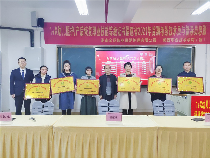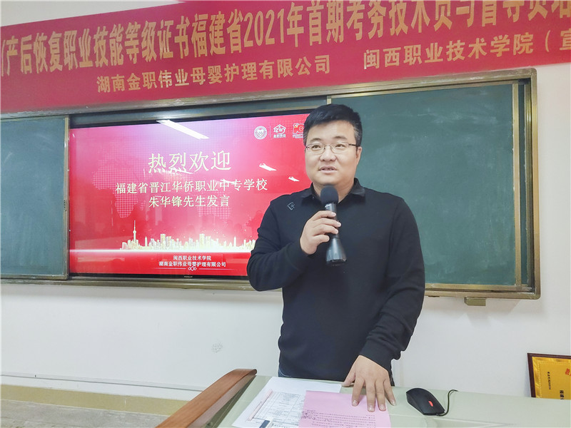 现场,金职伟业市场总监周该生为新一批考核站点院校代表进行授牌,他们分别是闽西职业技术学院、福建省龙岩华侨职业中专学校、福建省上杭职业中专学校、福建省漳州第一职业中专学校、福建省晋江华侨职业中专学校、泉州幼儿师范高等专科学校。同时,还为优秀学员和所有考核通过的老师颁发结业证书。