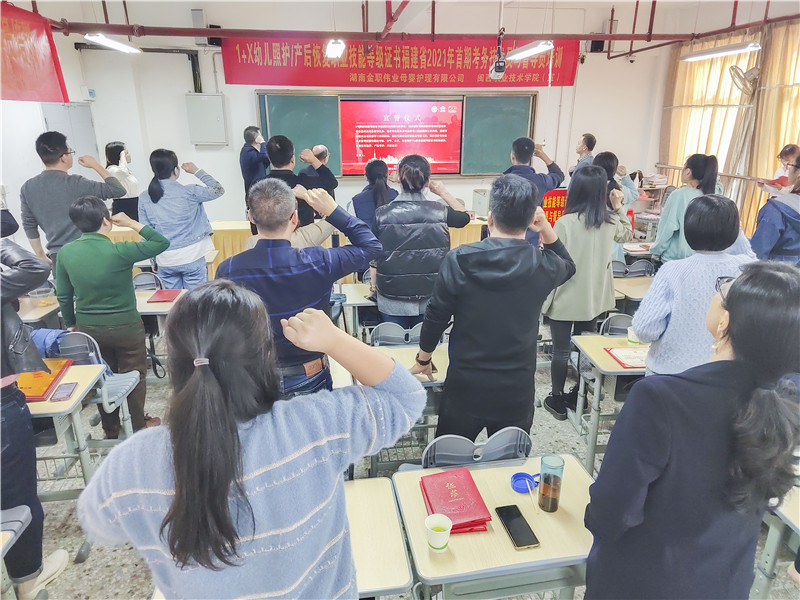 最后,在全体老师的声声誓言中,福建省首期1+X幼儿照护、产后恢复职业技能等级证书考务技术员和督导员培训班结业典礼圆满落幕。今后,金职伟业将不断推进幼儿照护、产后恢复考务、督导等相关工作,深化产教融合,持续深化校企合作,让幼儿照护、产后恢复的福利惠及千家万户。