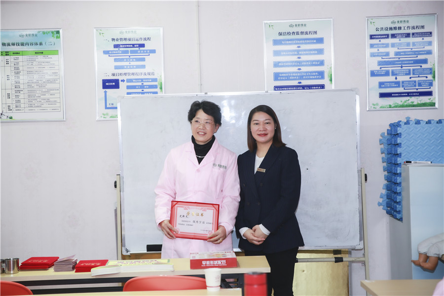 随后,班主任徐烁为认真负责的班干部及表现良好的学员颁发荣誉证书。学员史湘文、陈湘英、刘永妹荣获“优秀学员”称号,学员唐佳慧、周明荣获“优秀班干部”称号。“非常感谢金职伟业提供的学习机会,也感谢所有授课老师的细心教导,经过这些天的紧张学习,我学到了许多专业知识,收获颇丰,受益匪浅。”陈湘英分享道。