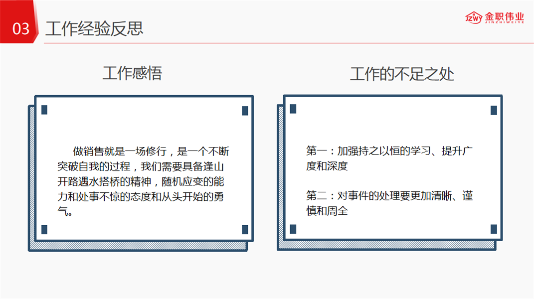 “回首2021年的所有工作,有成长也有不足,非常感谢各级领导对我们的充分信任,为我们分忧解难,做最坚强的后盾。”市场部李文丽分享道,海阔凭鱼跃,天高任鸟飞,在金职伟业这个优质的平台上,2022年,她将不断学习,提升服务,做优秀的区域考评负责人。市场部欧桂香提到,2022年,她将心怀感恩,紧紧跟随公司步伐,秉承贴心、专业、创新、感恩的服务理念,再启新征程,再上新台阶,再谱新篇章,做最好的自己!