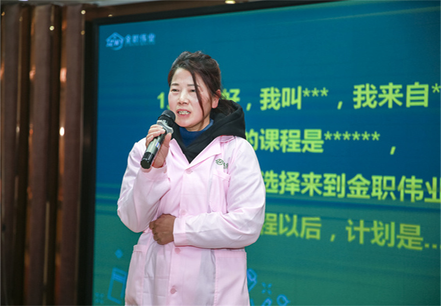 学员王静说:“我很喜欢金职伟业为我们提供的良好的学习环境,希望能与姐妹们在接下来的日子里携手共进,收获精彩人生。”来自云南的张利美表示,自己曾是一名全职妈妈,希望通过在金职伟业的学习拥有一技之长,找回自我。