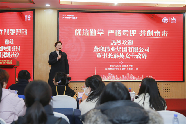 “未来,金职伟业将全力推进产业学院建设,努力实现其1+X培训、考核功能,基础教学功能,服务社会功能,师资培养功能,校企合作功能,打造妇幼老人才评价高地,助推‘一老一小’服务高质量发展,为建设技能型社会贡献一份力量。”