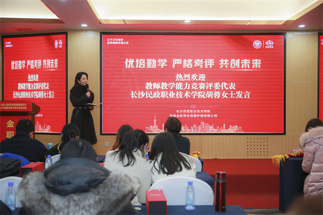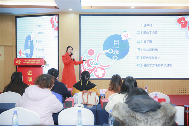此外,为更好展示教师风采,打造优质高效课堂,典礼开始前,现场还举办了教师教学能力竞赛。竞赛以说课和实操展示相结合的形式,要求参赛教师在固定时间内,完成对课程设计内容的解说及相应内容的手法操作演示。