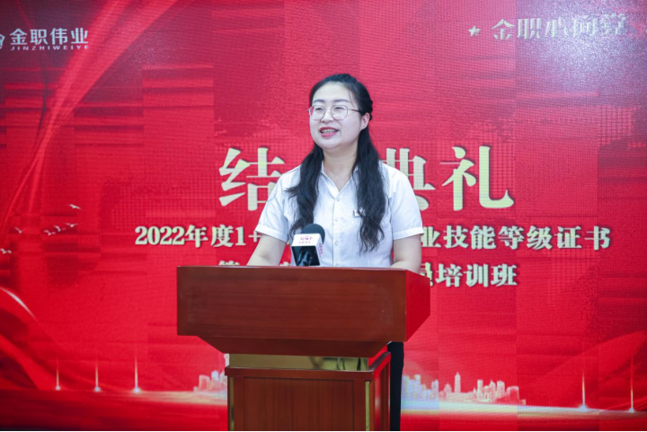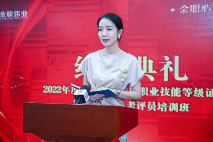 典礼伊始,金职伟业董事长助理兼品牌运营总监周娟、技术研发中心主任陈万方率先发言。周娟表示,金职伟业将借助1+X平台,不遗余力地完善、创新幼儿照护领域的标准、课程、服务、教材体系,并积极落地1+X幼儿照护课程实训基地的建设,协助各大院校逐步推进1+X证书制度试点工作,全力推动幼儿照护、产后恢复事业的高质量发展,并将1+X幼儿照护、产后恢复职业技能等级证书考评工作落地服务做好、做精。