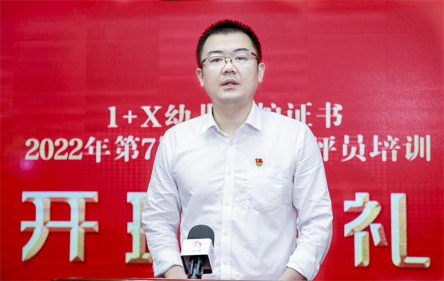 最后,金职伟业总经理助理兼院校事业部总监周该生作培训动员。他主要分享了以下三点:其一,本次培训的举办,旨在全力推进1+X幼儿照护职业技能等级证书试点工作的落地实施;其二,感谢各位老师对金职伟业的信任和支持,金职伟业将秉承贴心、专业、创新、感恩的服务理念,做好各项服务工作;其三,为确保培训效果,金职伟业在人员控制、课程安排、教学资源配备等方面做了优化调整和安排。“期望全体老师能静下心来,扎实学习,相互交流沟通,全面掌握幼儿照护的专业知识。”