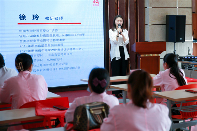 来自湖南衡阳的李雪梅正在备孕,为了更好地实现科学育儿,来学习母乳喂养指导和产后康复课程,上过大学、日语专业的她,还在现场用日语和姐妹们问好,赢来一片掌声。