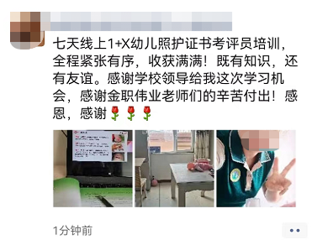 收官结业再出发。为全面检验培训成果,金职伟业组织全体参训学员进行了结业考试,并为考试通过的学员发放结业证书。通过此次培训,有效激发了教师的教学热情,进一步提升了教师教学能力和工作水平,相信在他们的努力下,一批又一批的幼儿照护专业人才将全面持证上岗,为我国幼儿教育的提质增效奠定良好发展基础。