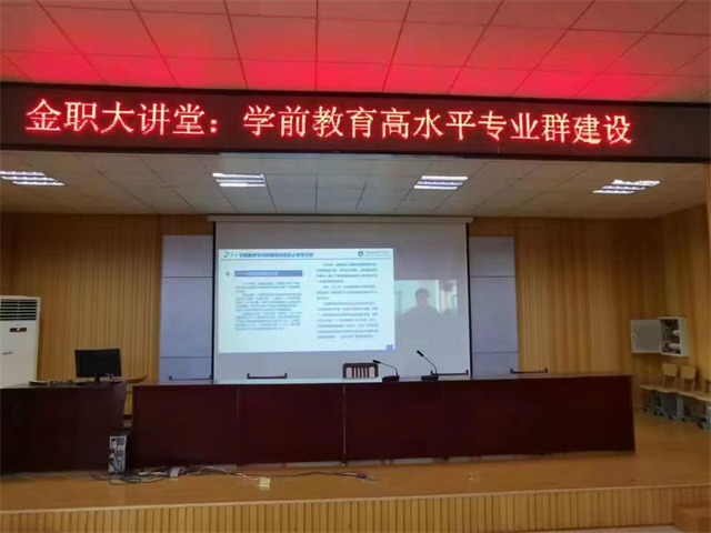 8月6日,金职大讲堂第35讲正式开讲,兰州职业技术学院初等教育学院王琦副院长以《学前教育高水平专业群建设》为主题,进行专题授课。