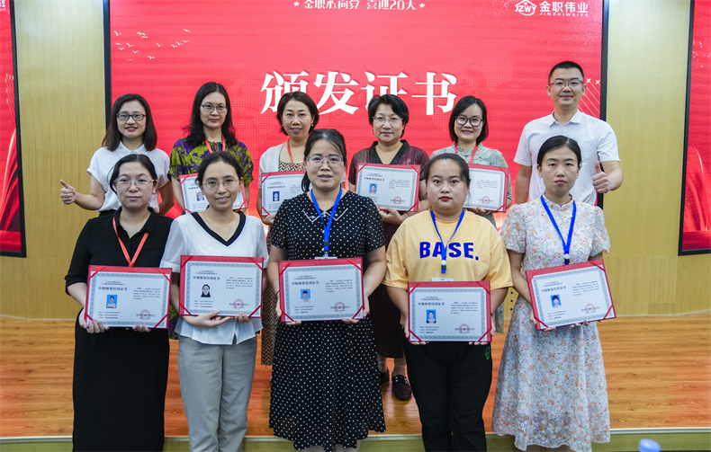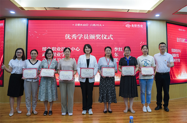 据了解,为提升参训教师的学习主动性,快速掌握各知识点,课堂设置了互动环节、实操练习、小程序测试等内容。培训期满,金职伟业对全体学员进行结业考试,并根据课堂表现和考试成绩,评选出优秀学员7名、优秀班干部3名。