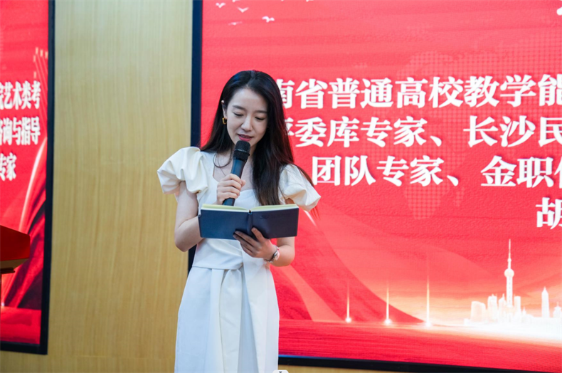 随后,长沙民政职业技术学院教学咨询与指导团队专家、湖南省教育考试院艺术类考试评委库专家胡蓉作点评,并宣布大赛获奖名单。