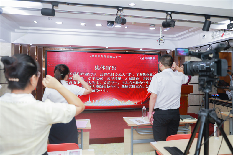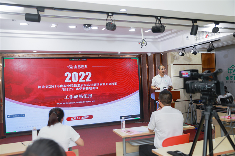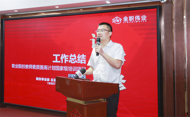 在各位老师们的庄严宣誓中,河北省2021年度职业院校教师素质提高计划国家级培训访学研修项目培训班结业典礼正式开始。金职伟业董事长助理兼品牌运营总监周娟、院校事业部总监周该生等领导参加典礼并发表讲话。