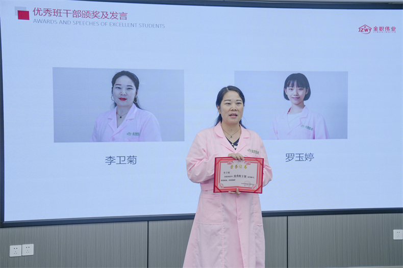 结业典礼上还评选出了优秀班干部、优秀学员等奖项,鼓励学员们学习积极典型,继续保持学习。为庆祝顺利结业,同时迎接即将到来的国庆节,所有学员一齐跳起了《美丽中国》舞蹈,献礼祖国。在一片欢乐热烈的氛围中,金职伟业第518期育婴班正式结业,祝愿所有学员带着知识与技能、理想与情怀,走上工作岗位,成为母婴行业中的佼佼者。