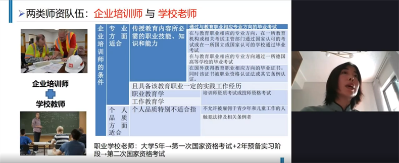 贺艳芳博士毕业于华东师范大学职业技术教育学专业,在德国学习、工作十余年,曾就职于德国大型职业教育集团,长期从事职业教育研究,目前主要研究方向为比较职业教育、职业教育课程、职业教育现代学徒制。本次课堂上,贺艳芳博士对德国双元制教育的深入阐述,也为聆听课程的广大职业教育园丁们打开了新思路。