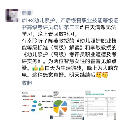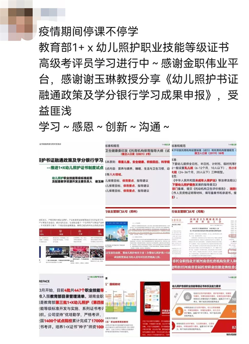 10月31日,金职伟业1+X幼儿照护职业技能等级证书2022年第2期高级师资及考评员培训班圆满结业,参训老师纷纷发表感言,感慨收获良多。