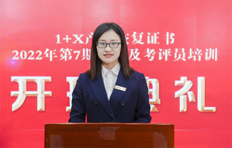 随后,广东机电职业技术学院公共管理学院健康管理专业主任孙峰副教授作为学员代表分享学习初衷。她提到,金职伟业是培养优秀师资的摇篮,为院校教师提供了一个学习、成长、圆梦的舞台,“我在此代表全体学员郑重承诺,我们会明确目标,端正态度,虚心求教,课后灵活运用,通过学用结合,使自己学有所得、学有所获。相信经过此次培训,我们对1+X产后恢复职业技能等级证书基本知识和职业技能的理解会更加深刻,对‘岗课赛证’的融合会更加得心应手,对‘三教’改革的执行力度会更加到位。”