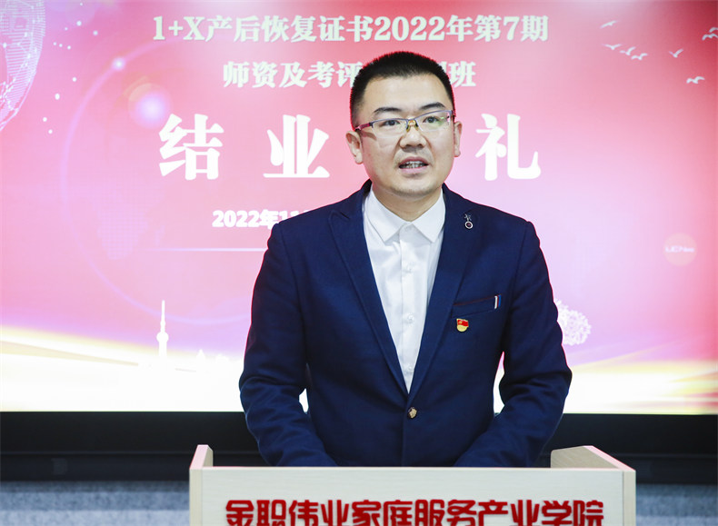 最后,金职伟业院校事业部总监周该生充分肯定了本期培训班的实际成效。为将学习内容更好地用于实践工作中,周该生对参训教师们提出:一是要学以致用,将所学所训落实到工作中去,用实践去检验此次的培训成果;二是要不断提高,将此次培训作为新的起点,脚踏实地,有序推动1+X产后恢复职业技能等级证书试点工作。