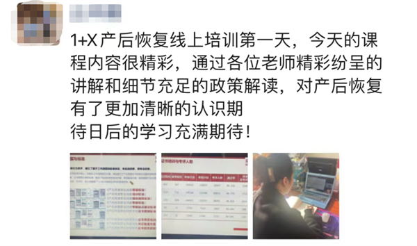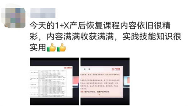 “此次课程设置合理,难度适中,内容贴近产后恢复行业的需求与工作实际,通过专家的精彩授课,我对国家政策和产后恢复相关知识点有了更深了解。”塔里木职业技术学院教育健康学院护理专业周彩云老师提到,此次培训提升了她的核心技能,让她更加系统、专业、全面地了解产后恢复行业的发展现状,对今后日常授课、学生实操指导具有极大帮助。