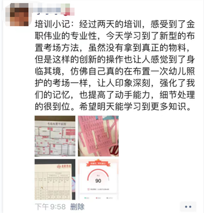 在这段培训时间里,教师们以学为阶砥砺意志,以悟为梯铸魂提能,汲取了幼儿照护、产后恢复的专业知识,收获了宝贵的师生情、同窗谊,留下了难忘的美好回忆。